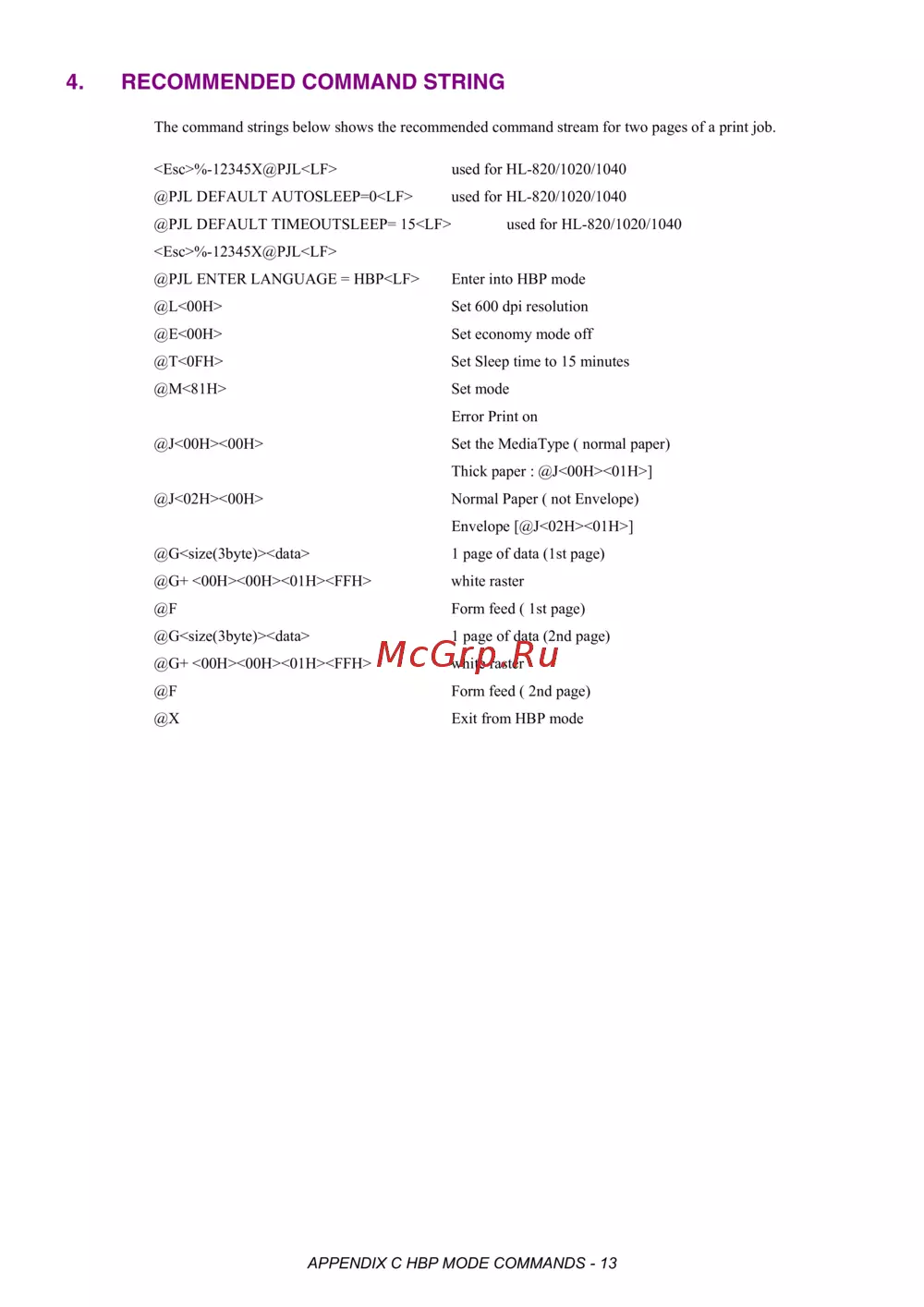 <Esc>%-12345X@PJL<LF> used for HL-820/1020/1040