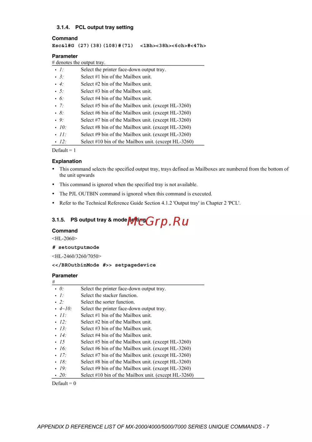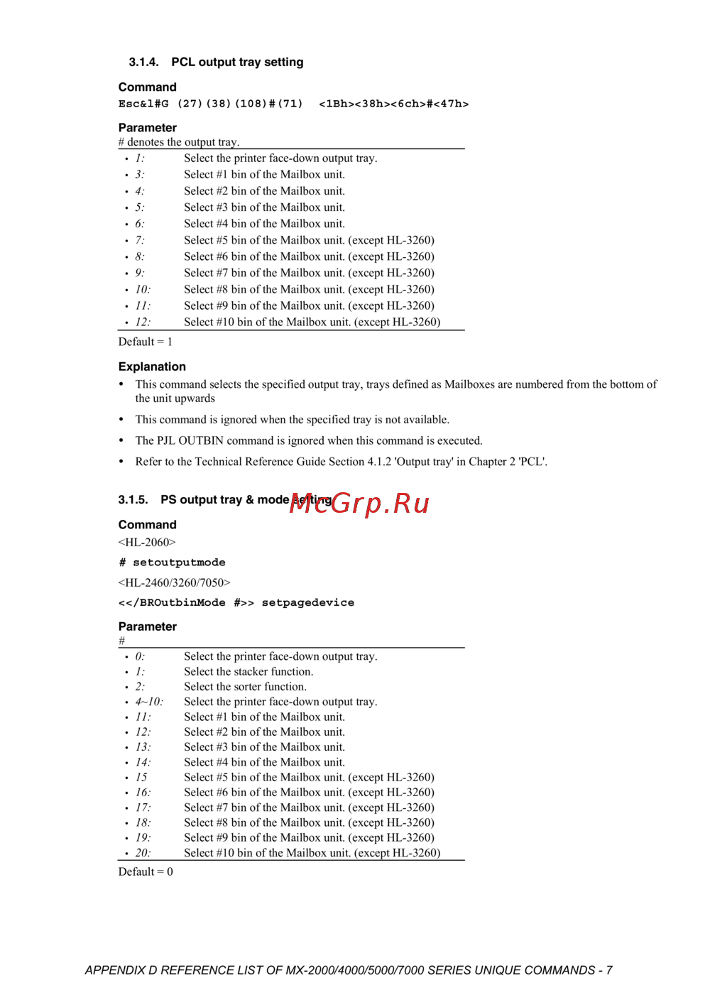 APPENDIX D REFERENCE LIST OF MX-2000/4000/5000/7000 SERIES UNIQUE COMMANDS - 7