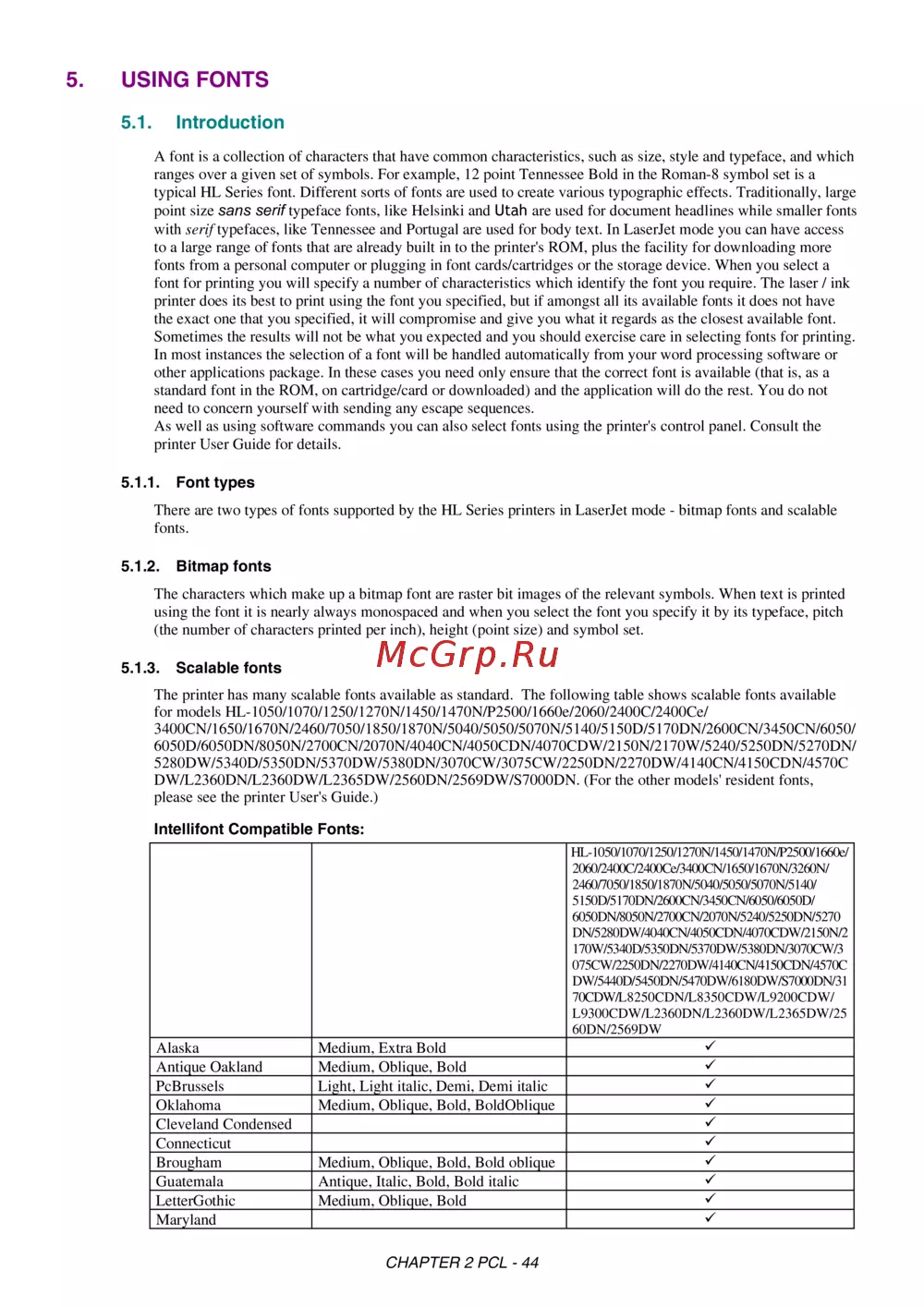 with serif typefaces, like Tennessee and Portugal are used for body text. In LaserJet mode you can have access