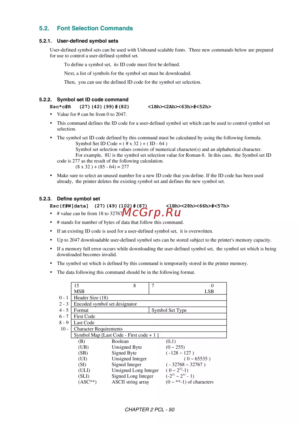 The symbol set ID code defined by this command must be calculated by using the following formula.