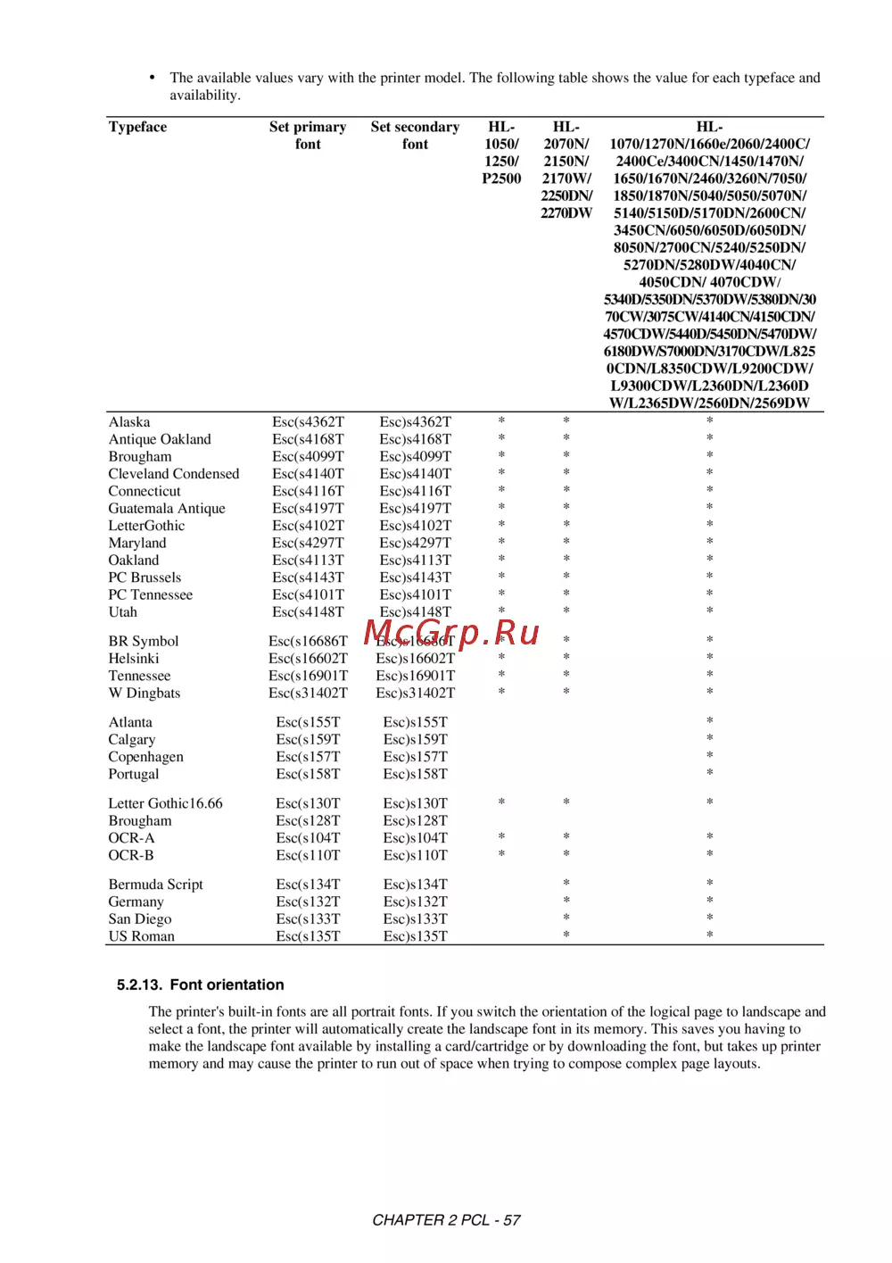 - For hl 2060 2400c 2400ce 3400cn 2460 3260n 7050 2600cn 3450cn 6050 6050d 6050dn only p.497