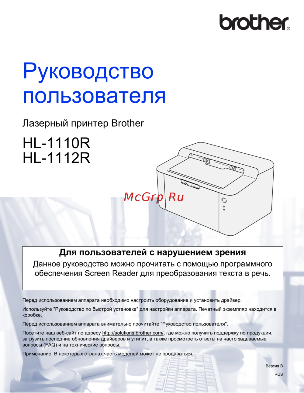 - Руководство пользователя hl 1110r hl 1112r p.1