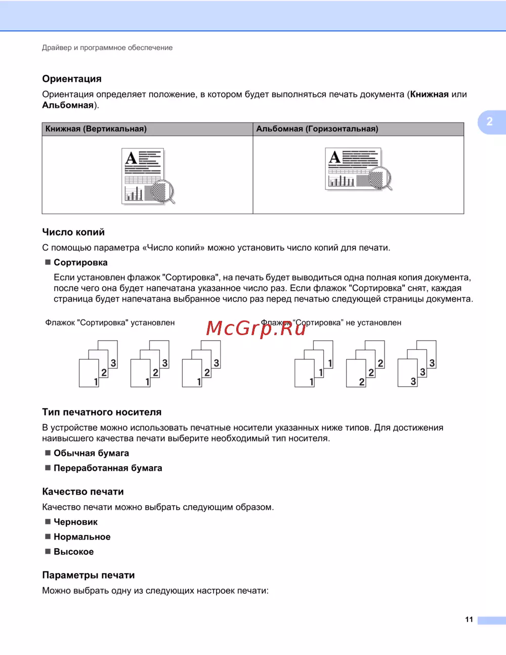 Brother HL-1110R — настройки печати: ориентация, количество копий и качество [17/80]