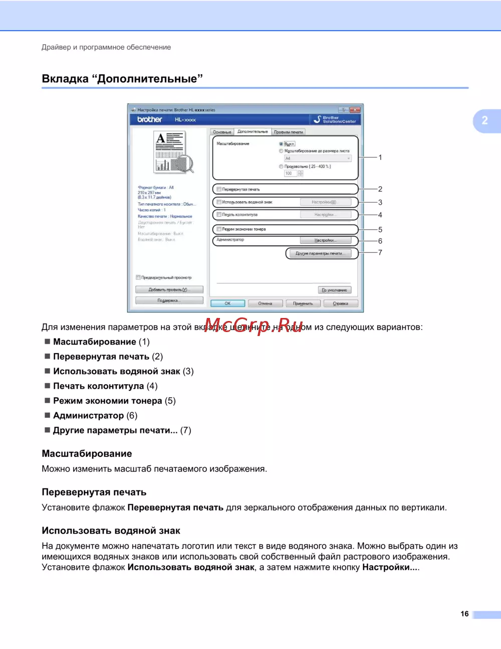 Brother HL-1110R — настройки печати: масштабирование, водяные знаки и другие параметры [22/80]