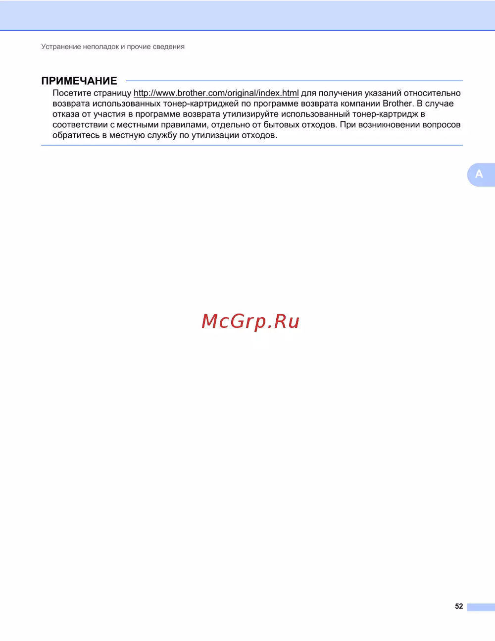 возврата использованных тонер-картриджей по программе возврата компании Brother. В случае