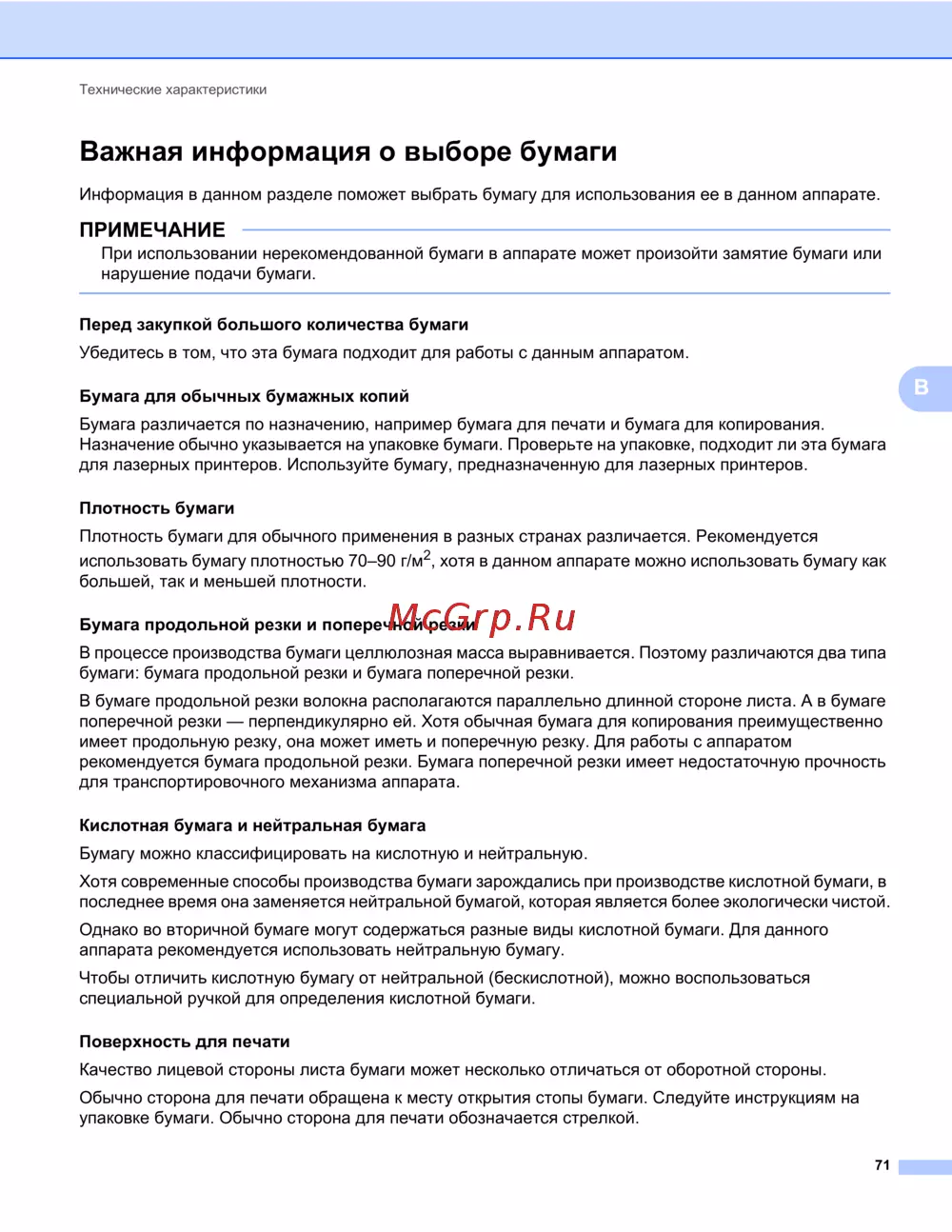 Информация в данном разделе поможет выбрать бумагу для использования ее в данном аппарате.