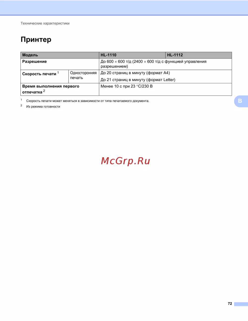 Скорость печати может меняться в зависимости от типа печатаемого документа.