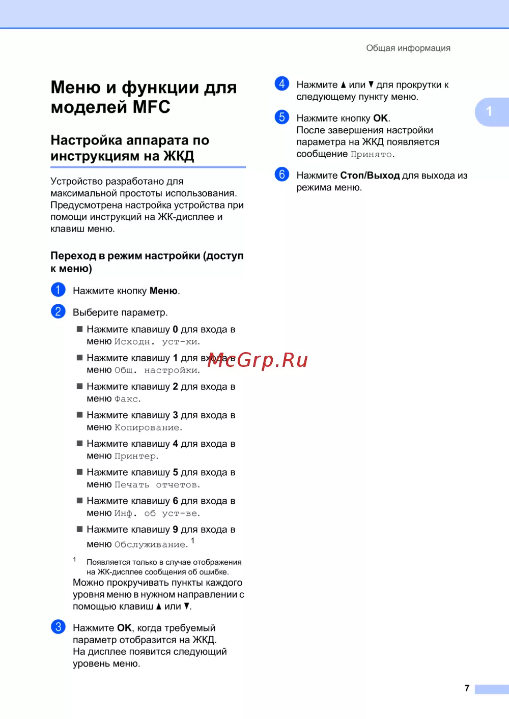 - Набор и сохранение номеров mfc 1810 и mfc 1815 44 p.6