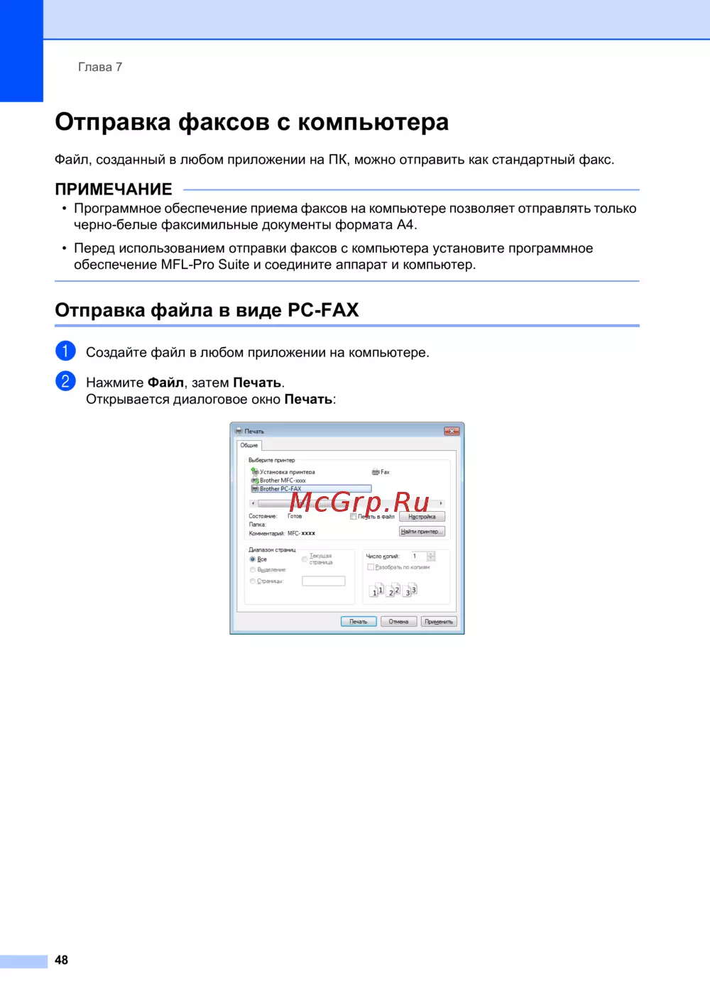 - Использование функции pc fax mfc 1810 и mfc 1815 46 p.6