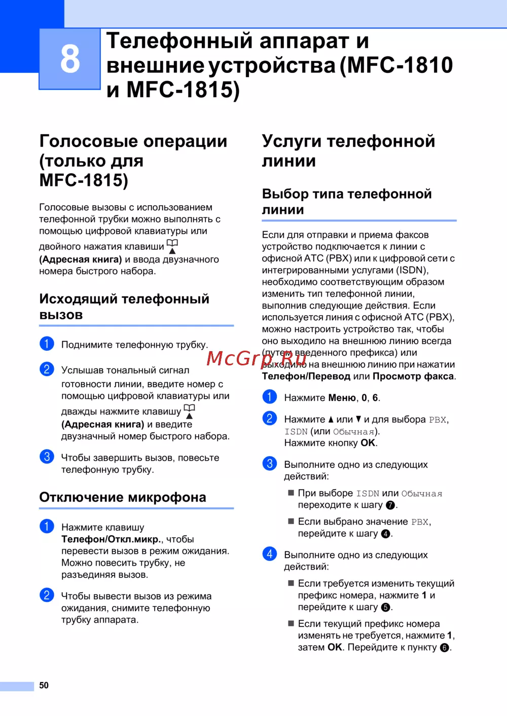 - Телефонный аппарат и внешние устройства mfc 1810 и mfc 1815 50 p.6
