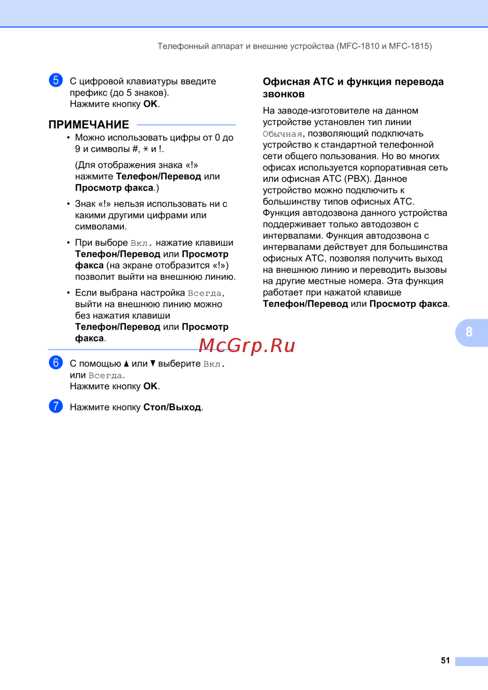 - Телефонный аппарат и внешние устройства mfc 1810 и mfc 1815 50 p.6