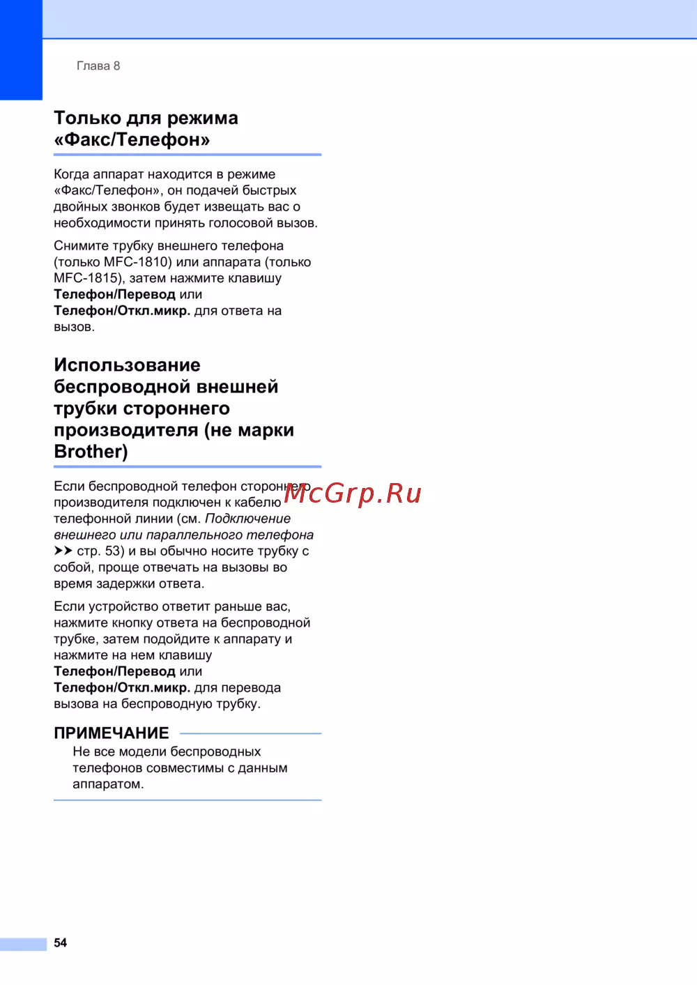 - Голосовые операции только для mfc 1815 p.58