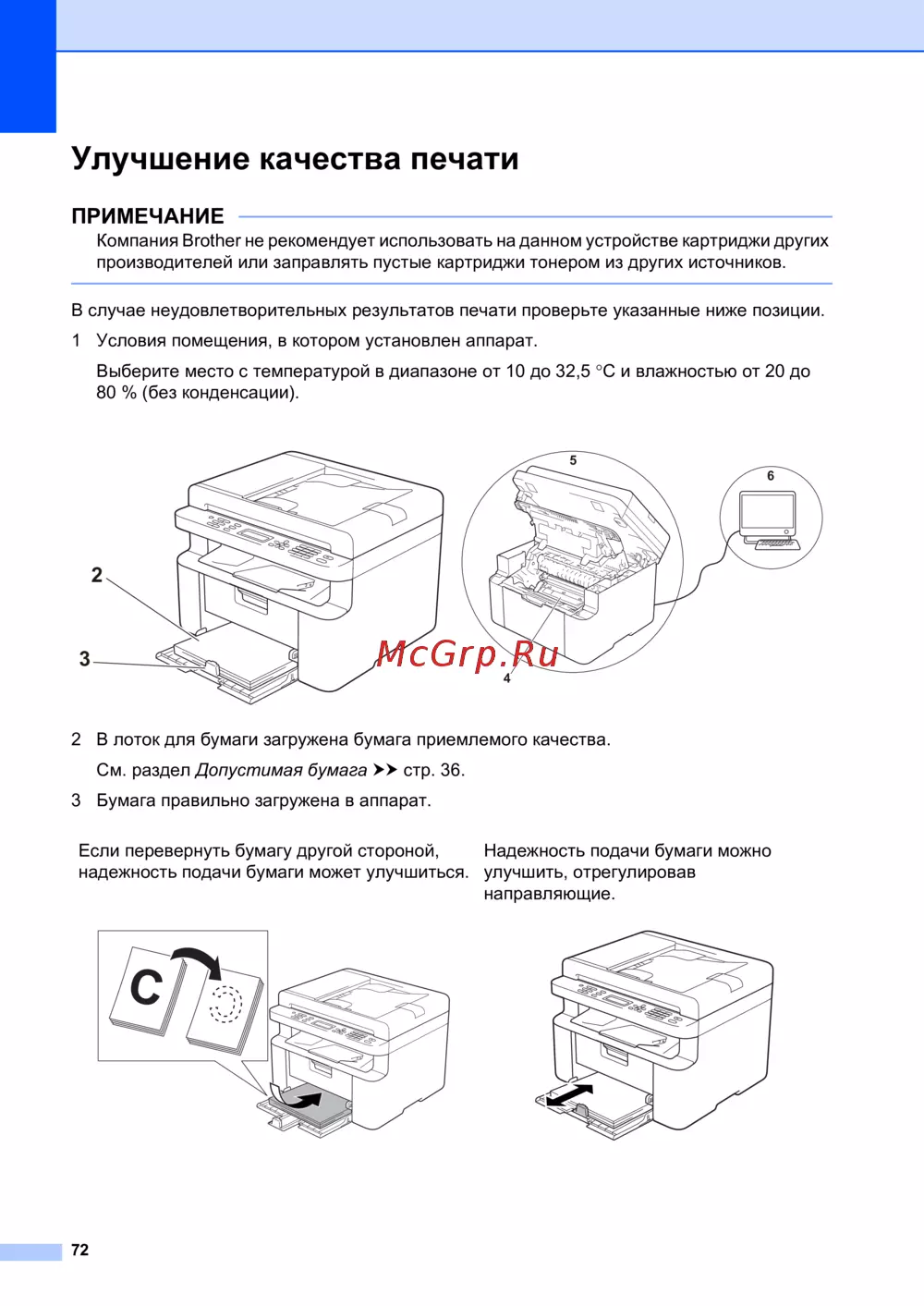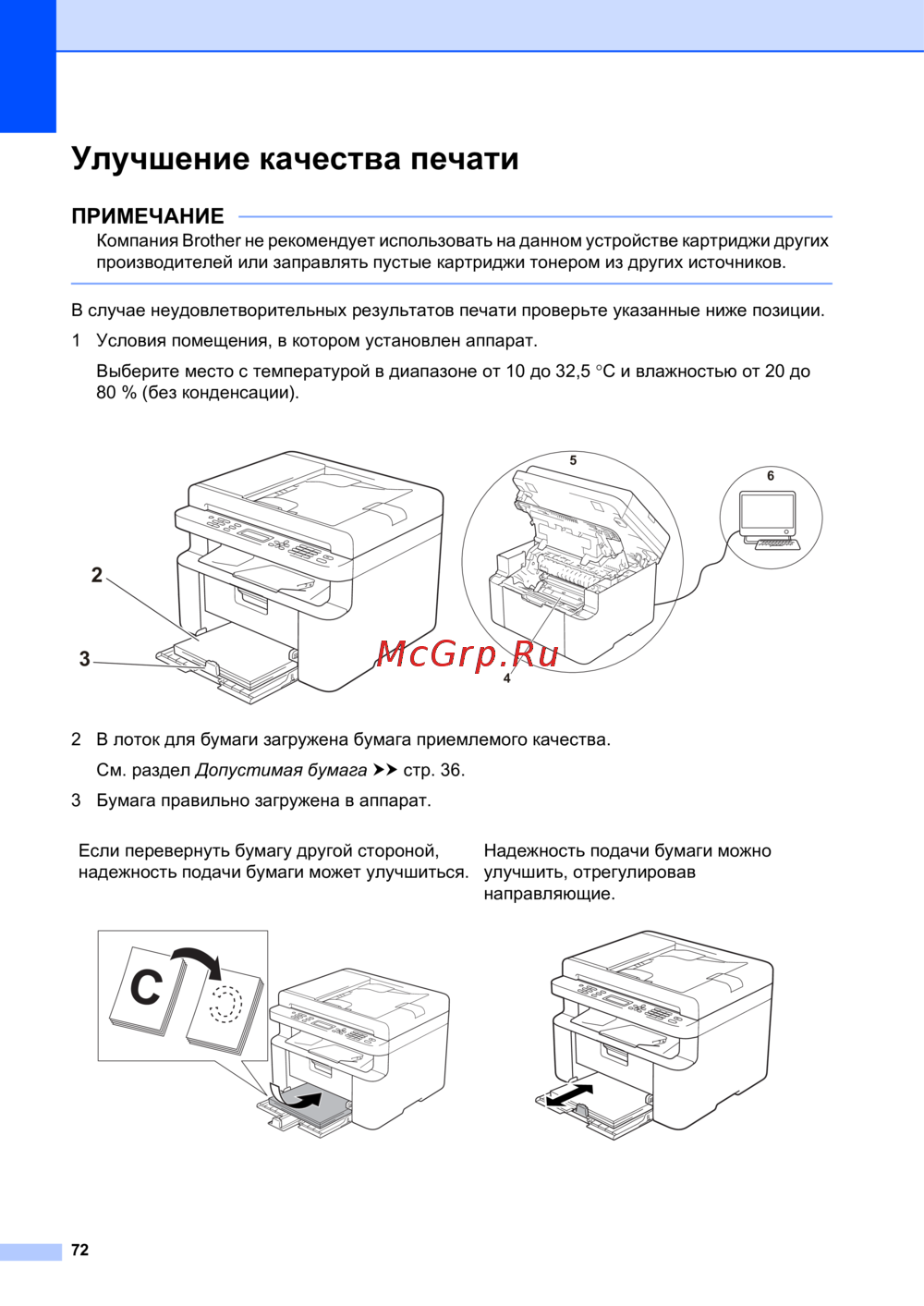 Компания Brother не рекомендует использовать на данном устройстве картриджи других