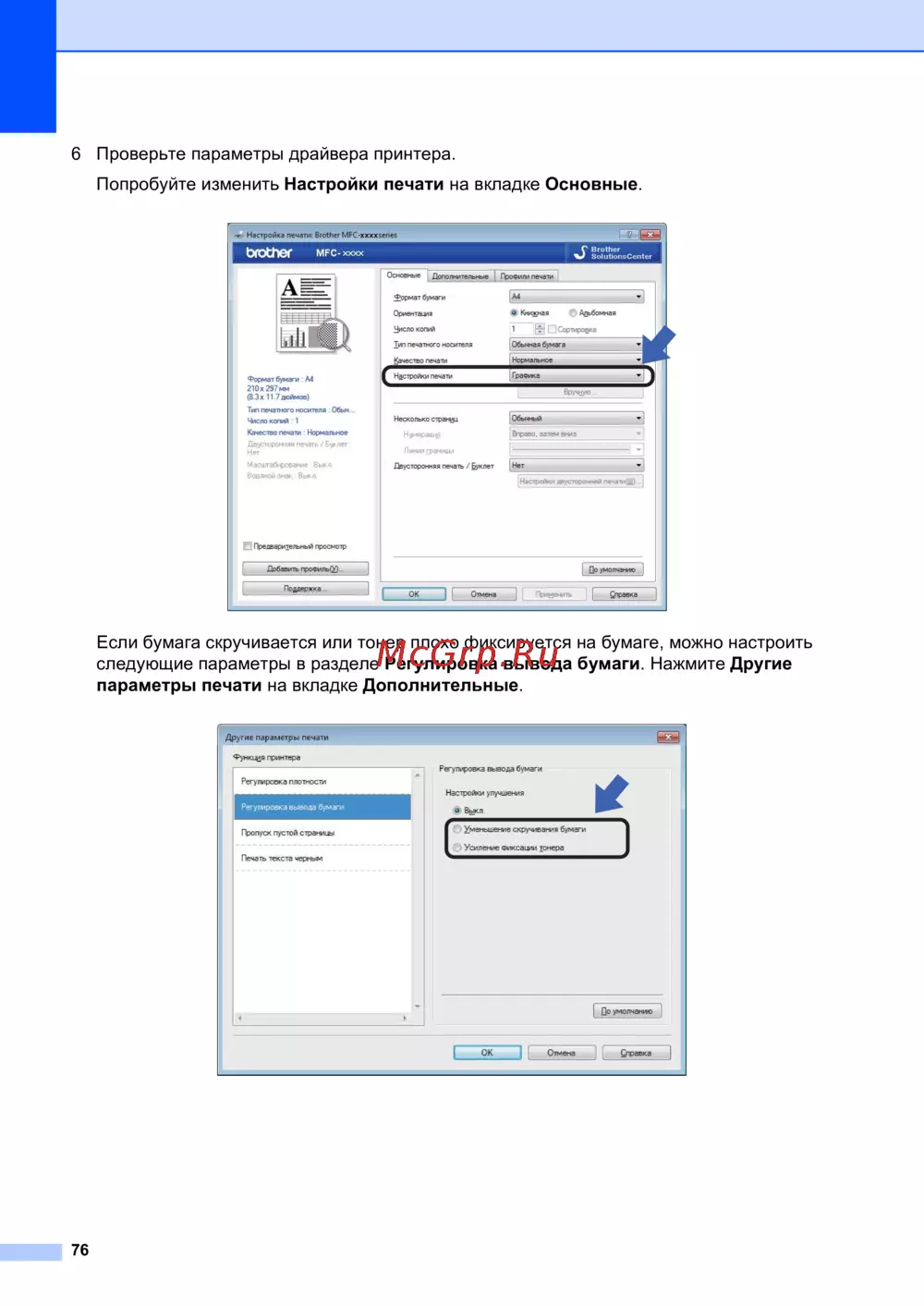 следующие параметры в разделе Регулировка вывода бумаги. Нажмите Другие