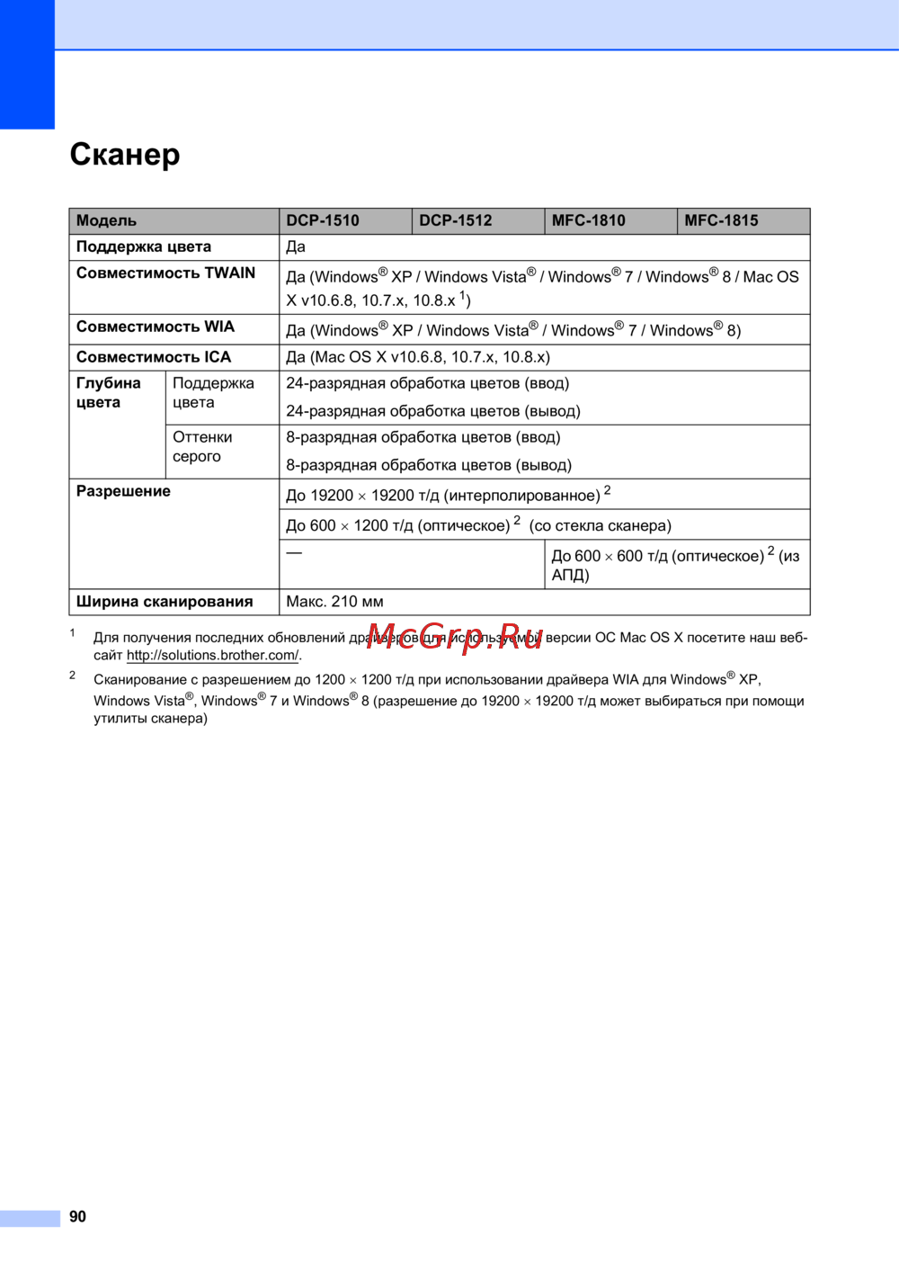 Модель DCP-1510 DCP-1512 MFC-1810 MFC-1815