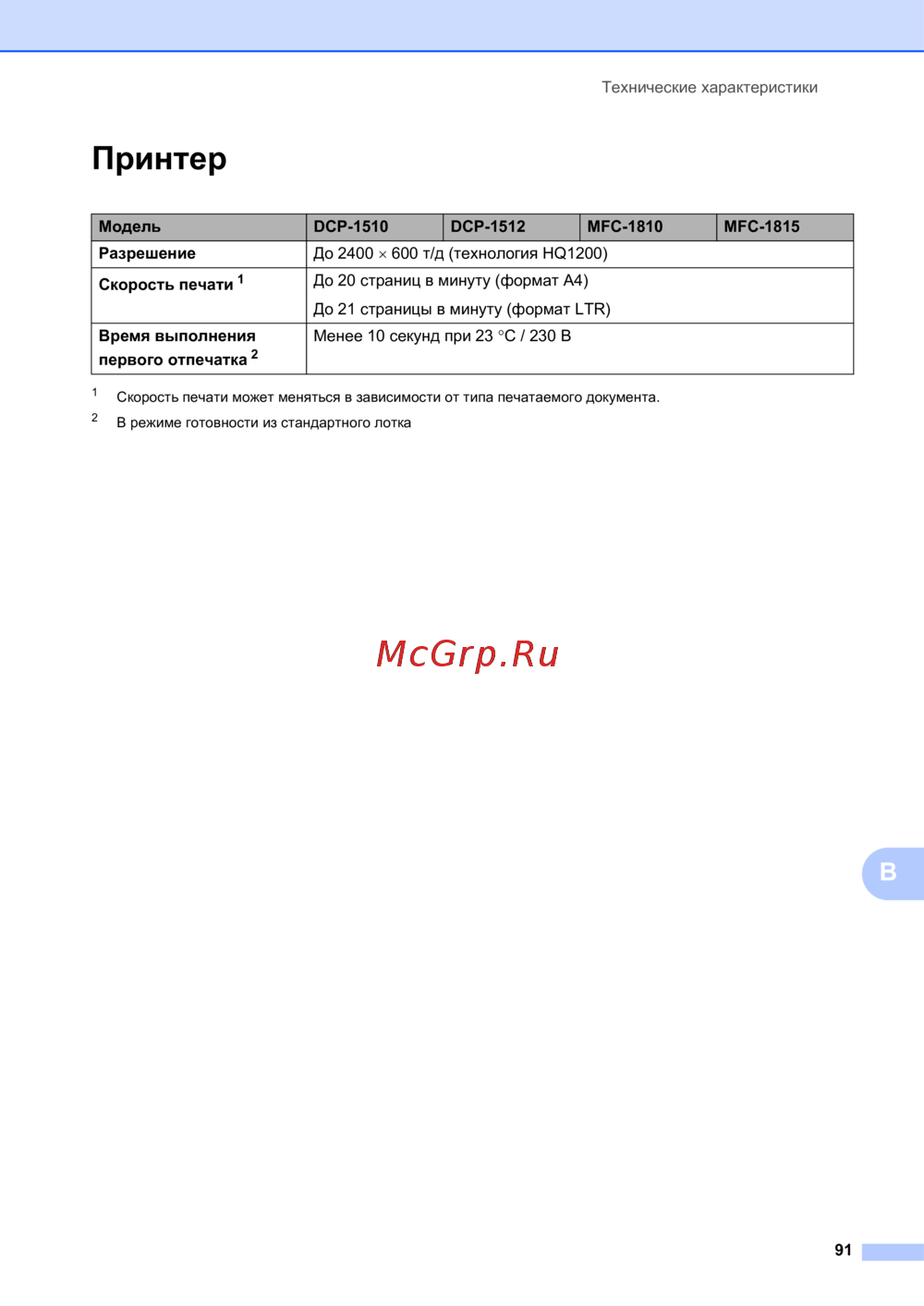 Модель DCP-1510 DCP-1512 MFC-1810 MFC-1815