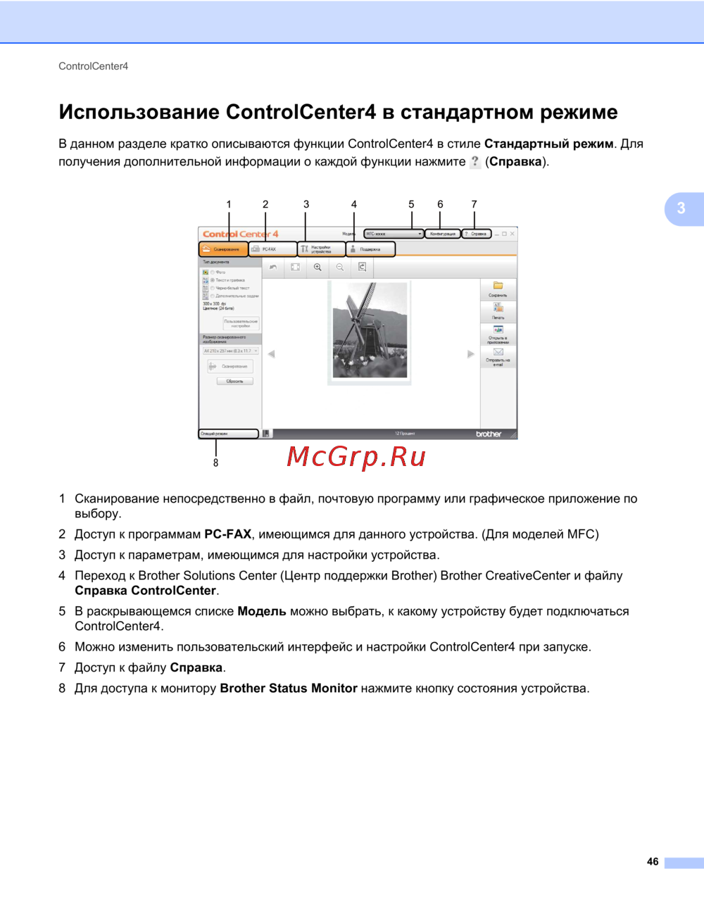 В данном разделе кратко описываются функции ControlCenter4 в стиле Стандартный режим. Для