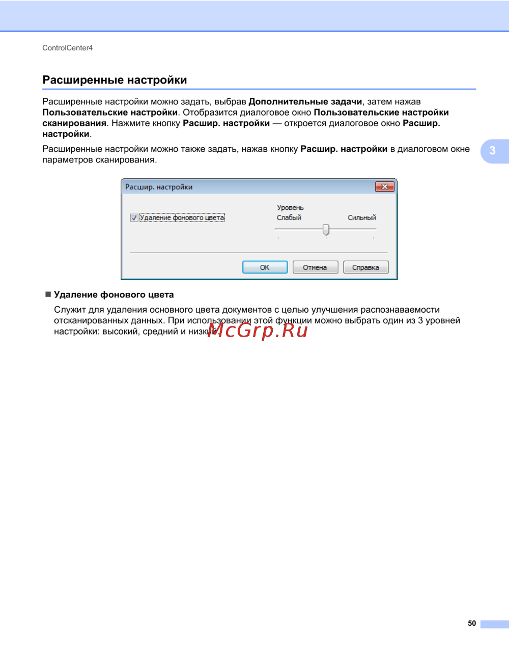 сканирования. Нажмите кнопку Расшир. настройки — откроется диалоговое окно Расшир.