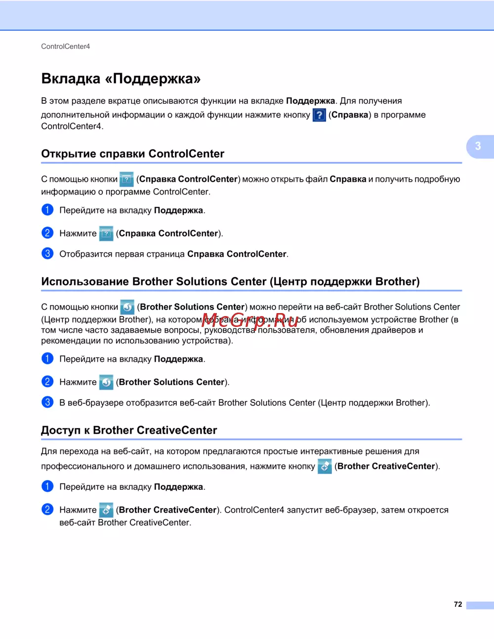 Использование Brother Solutions Center (Центр поддержки Brother) 3