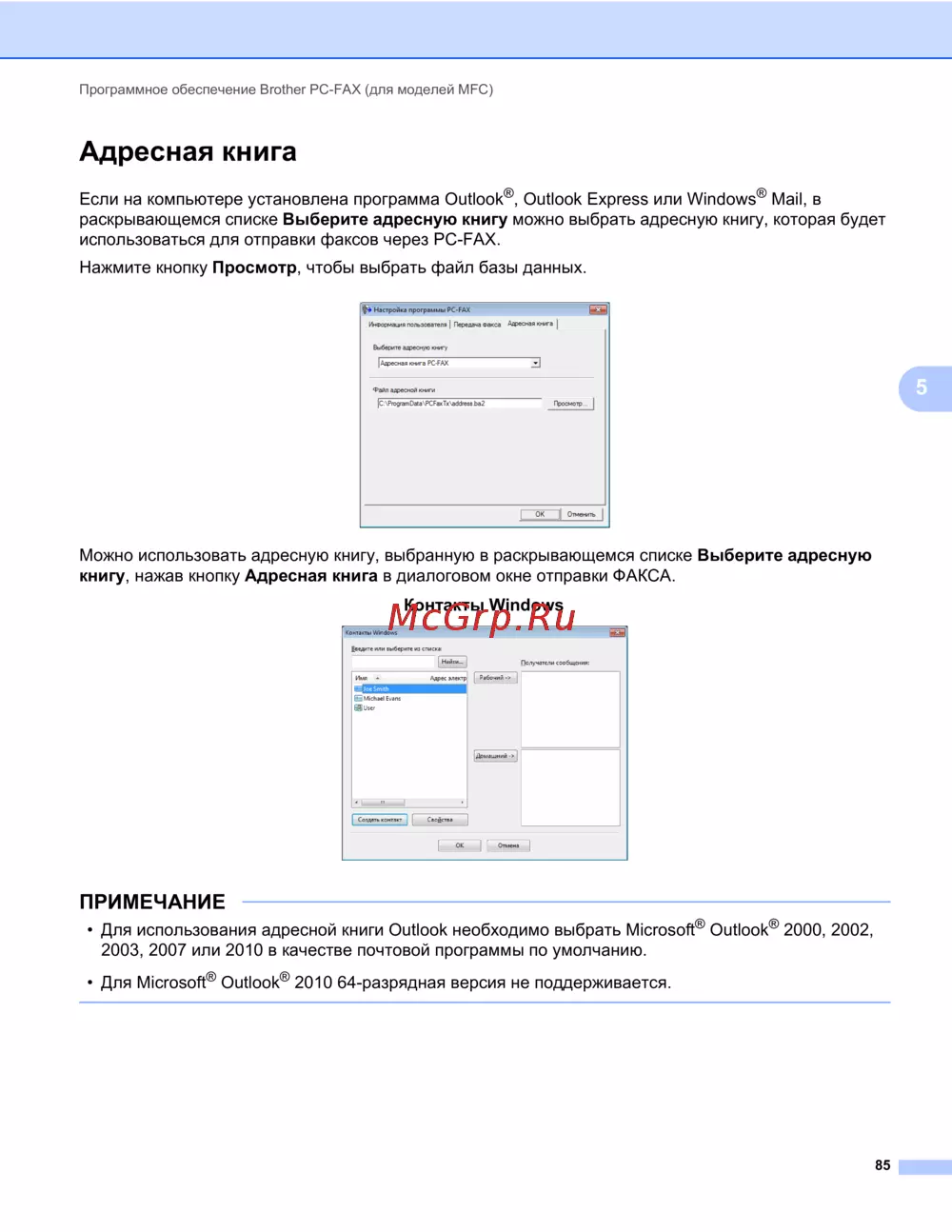 Программное обеспечение Brother PC-FAX (для моделей MFC)
