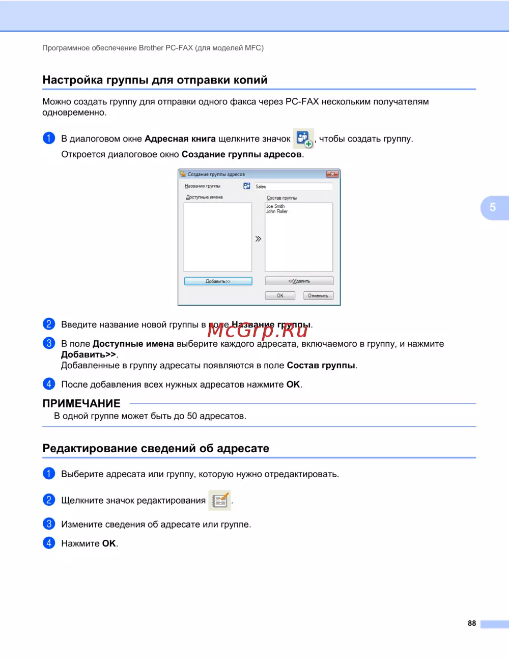 Программное обеспечение Brother PC-FAX (для моделей MFC)