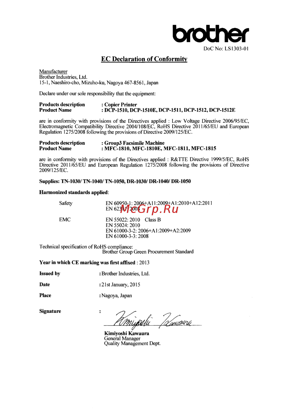 Brother MFC-J6510DWБезопасность и правовые вопросы -