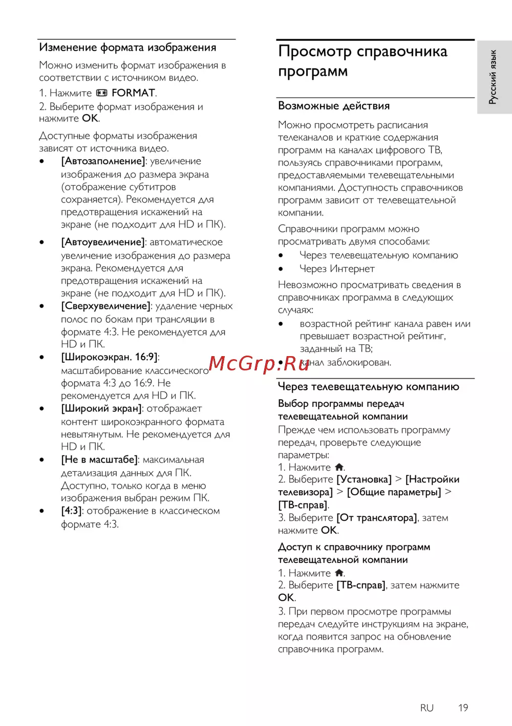 Philips 32PFL4508T/60 — изменение формата изображения и доступ к программам ТВ [19/90]