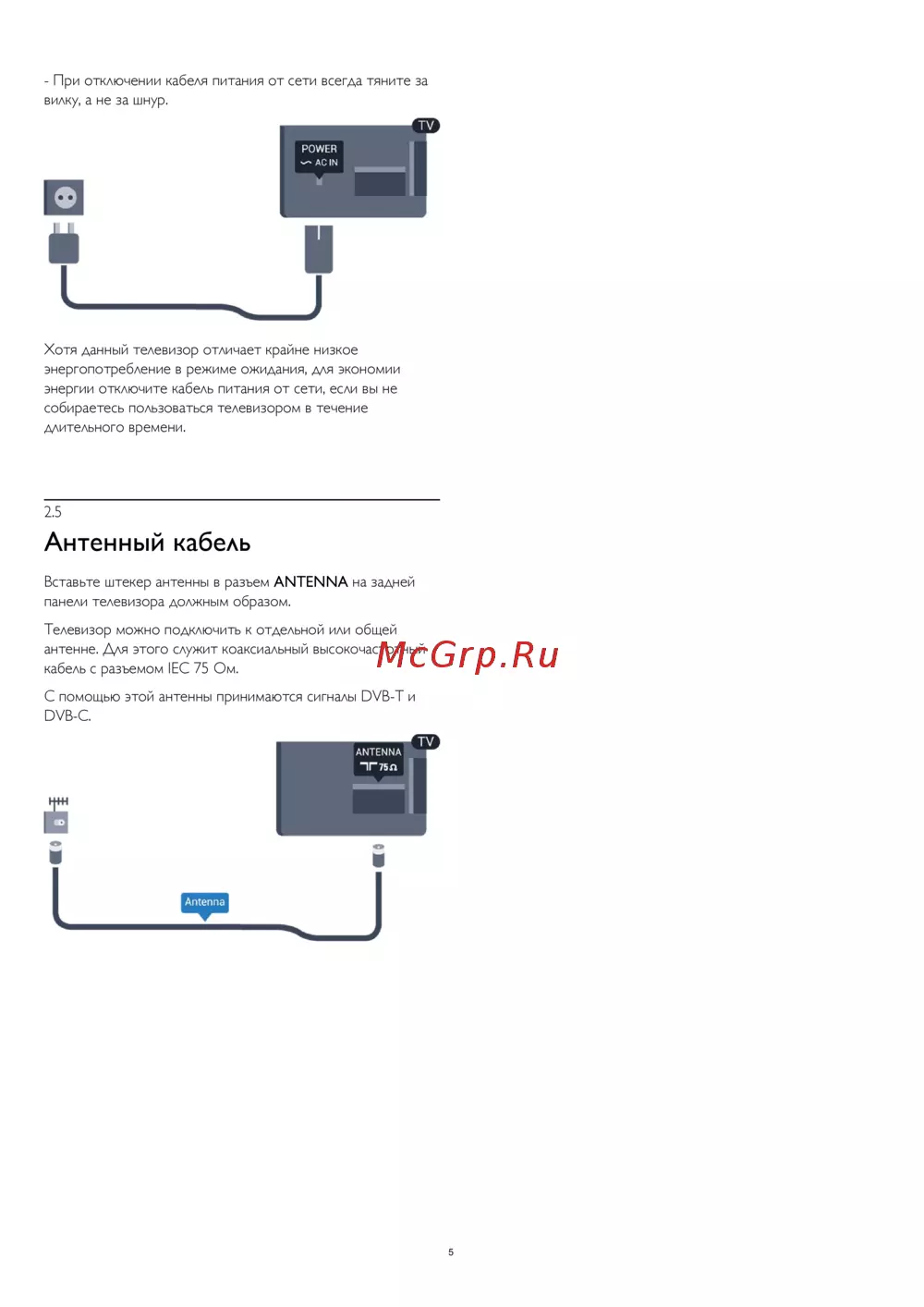 Philips 32PFT4100/60 — правильное отключение и подключение телевизора к антенне [5/51]
