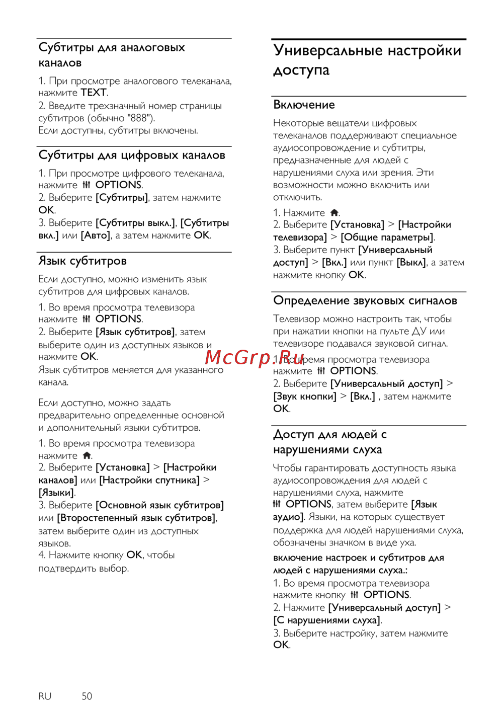 ![Philips 22PFL4208H [50/91] Доступ для людей с нарушениями слуха](/views2/1126262/page50/bg32.png)