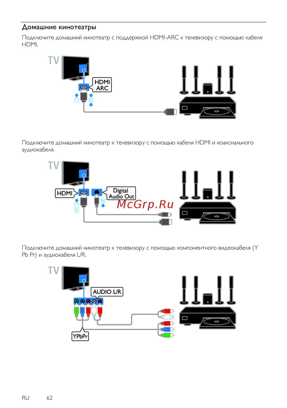 - Подключите домашний кинотеатр к телевизору с помощью композитного кабеля cvbs и подключите домашний кинотеатр к телевизору с помощью композитного кабеля cvbs и аудиокабеля l r p.63