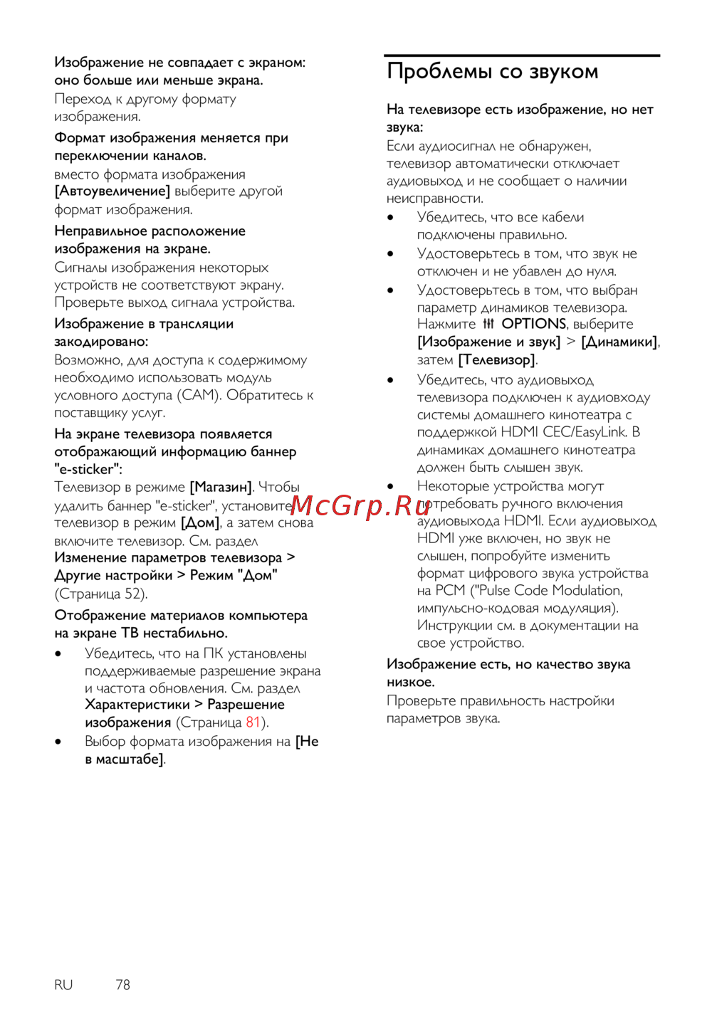 ![Philips 22PFL4208H [78/91] Проблемы со звуком](/views2/1126262/page78/bg4e.png)