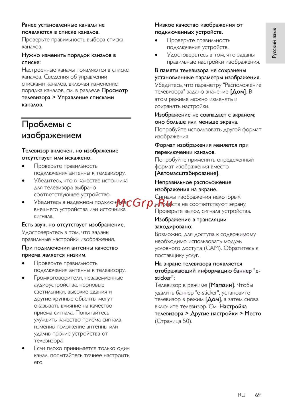 ![Philips 26PFL4007T [69/81] Проблемы с изображением](/views2/1126270/page69/bg45.png)