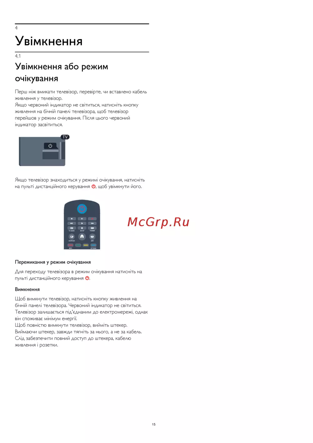 Philips 32PHT4319 [15/70] Увімкнення або режим очікування
