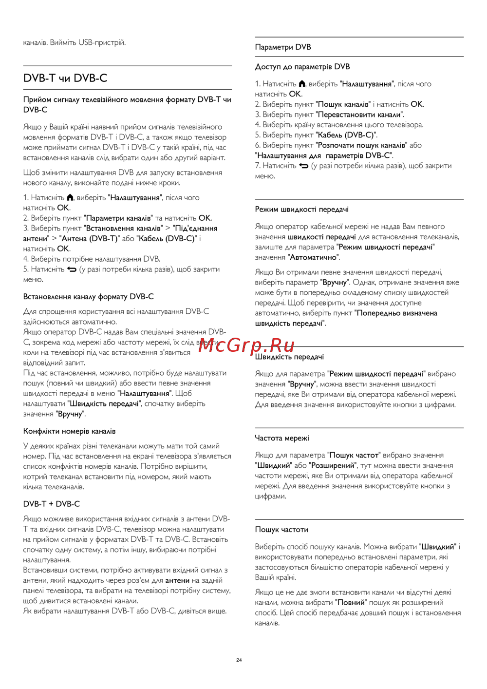 T та вхідних сигналів DVB-C, телевізор можна налаштувати