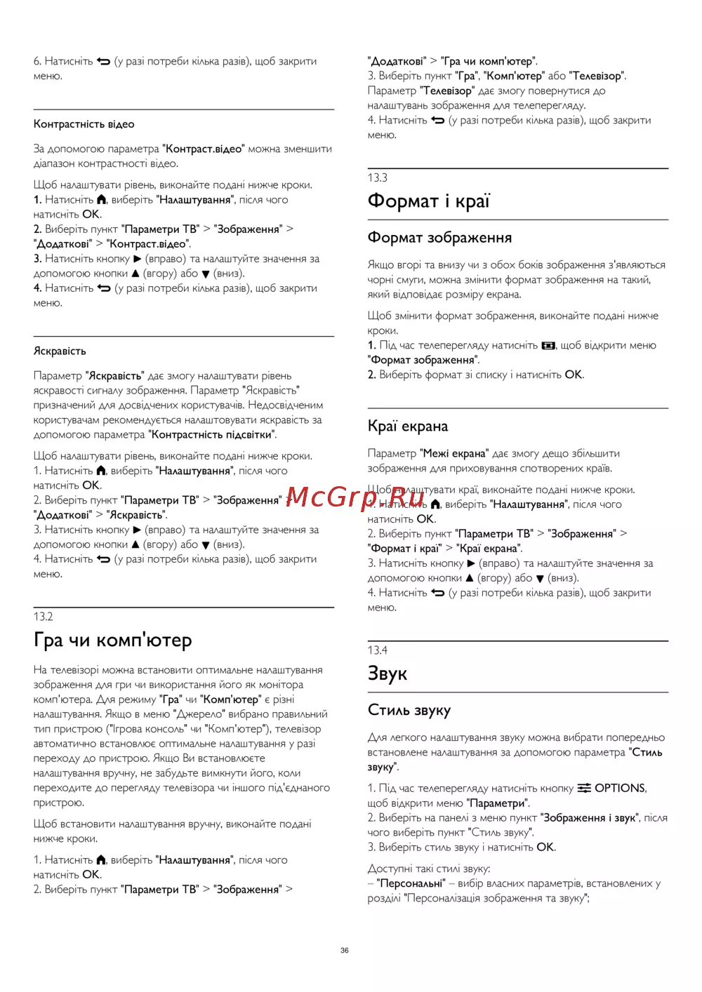 - Стиль звуку p.36