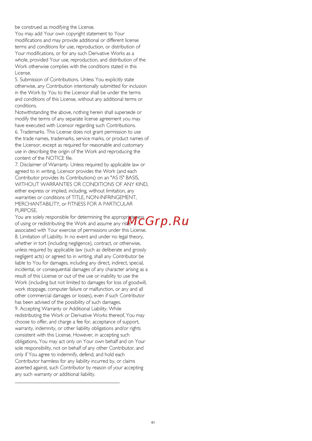 7. Disclaimer of Warranty. Unless required by applicable law or