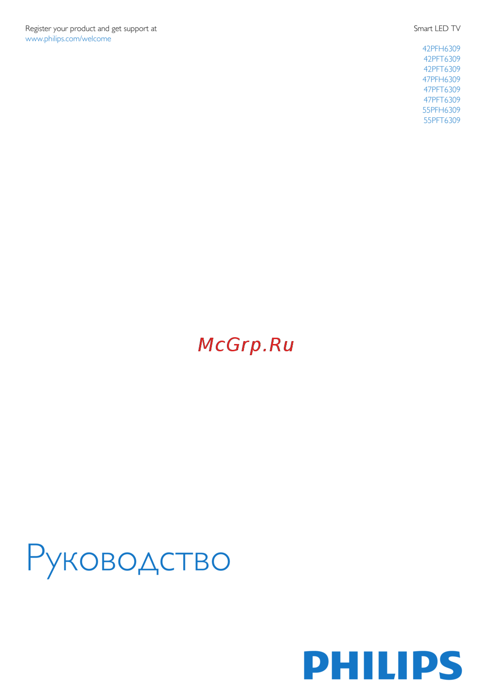 Philips 42PFH6309Инструкция по быстрому запуску -