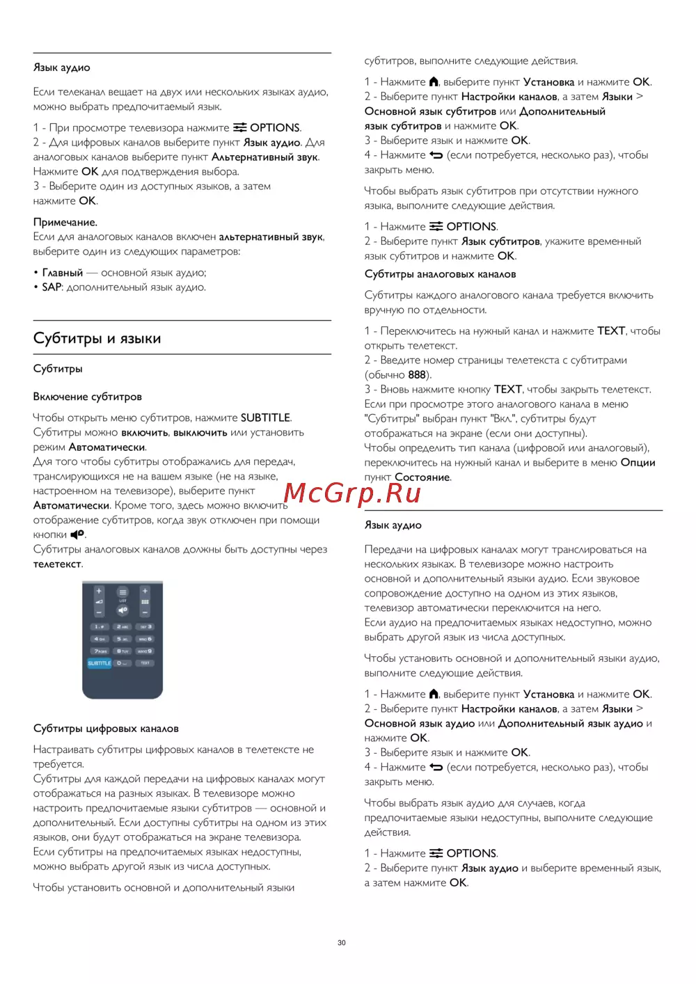 Philips 42PFH6309 [30/96] Субтитры и языки