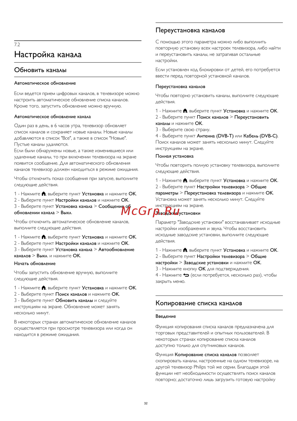 Philips 42PFH6309 — настройка автоматического обновления и переустановки каналов телевизора [32/96]