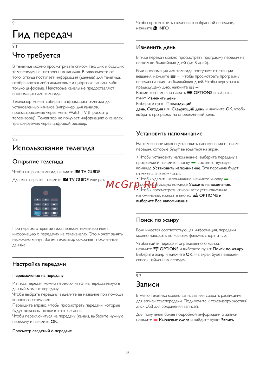 Philips 42PFH6309 — как использовать телегид для просмотра и записи передач [37/96]
