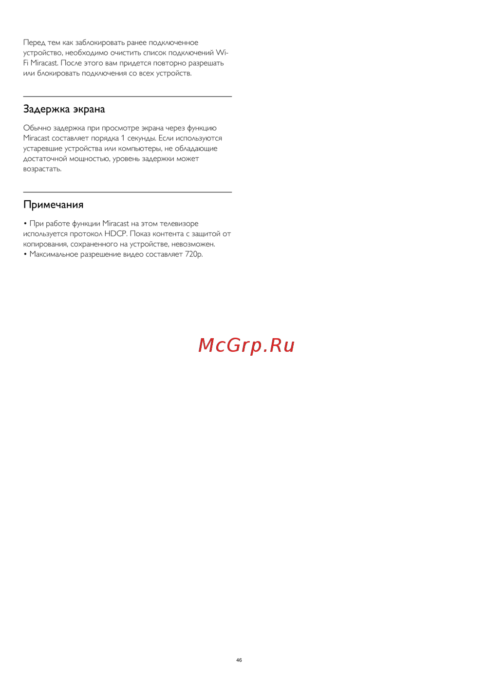 • При работе функции Miracast на этом телевизоре