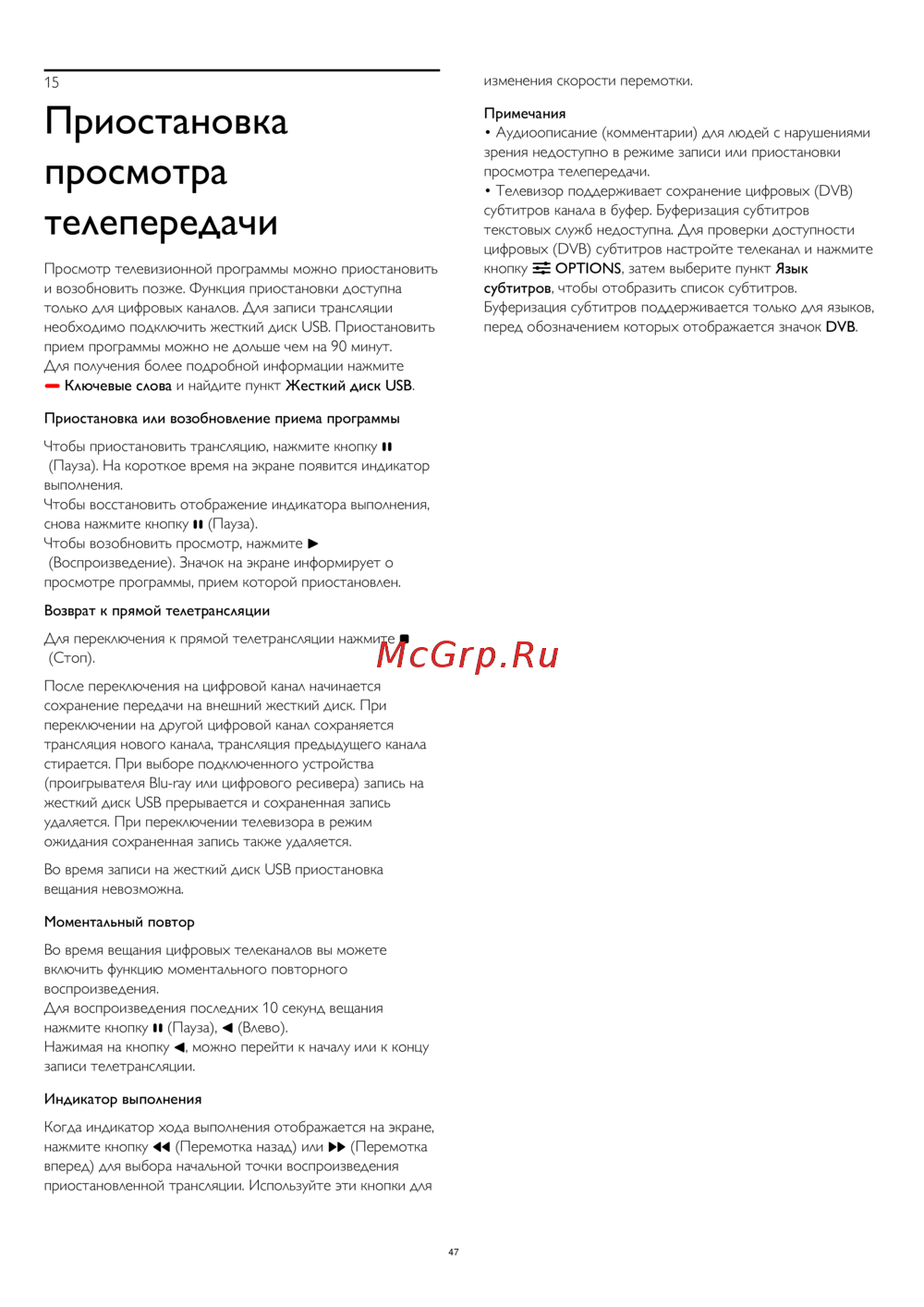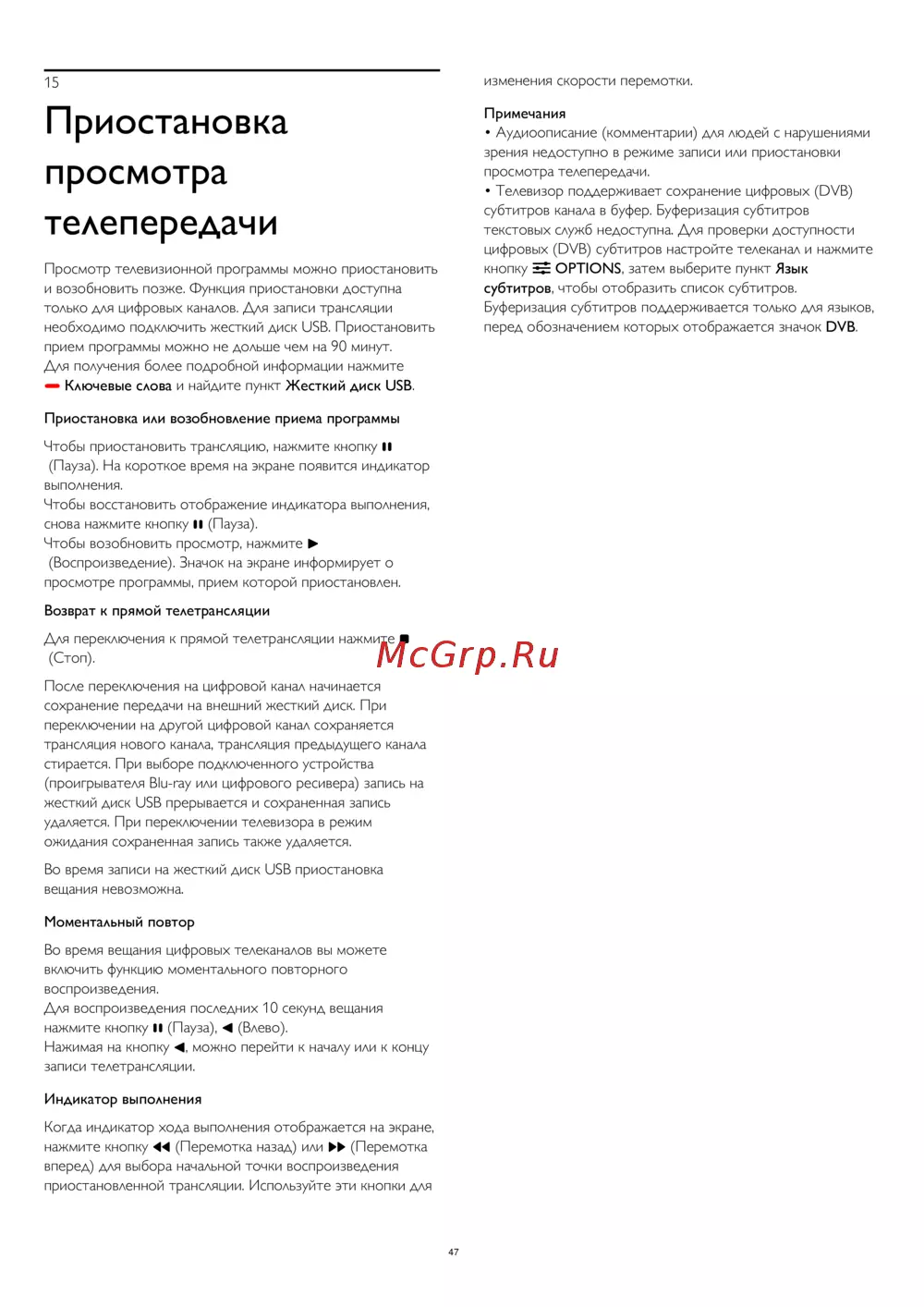 ![Philips 42PFH6309 [47/96] Приостановка просмотра телепередачи](/views2/1126518/page47/bg2f.png)