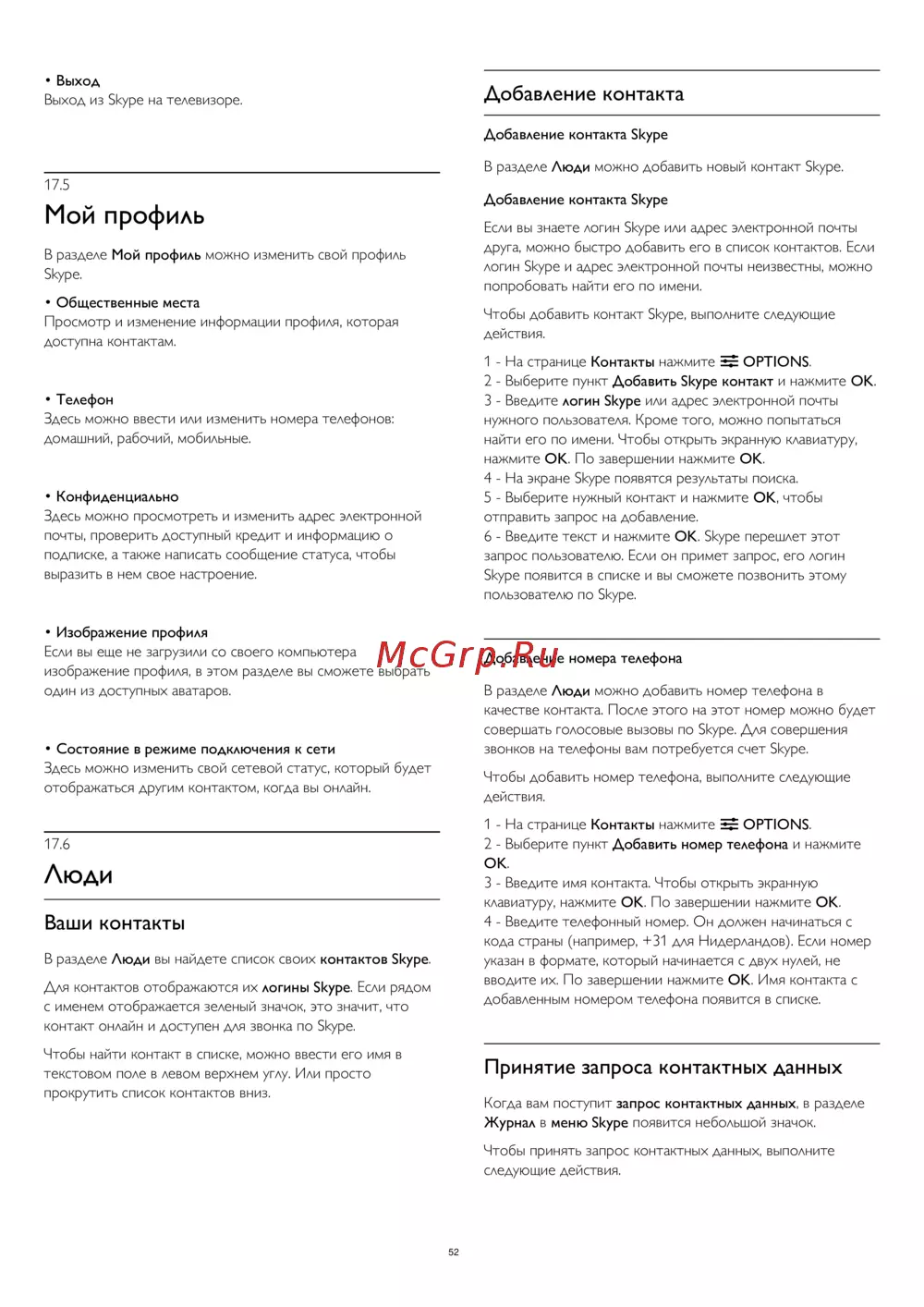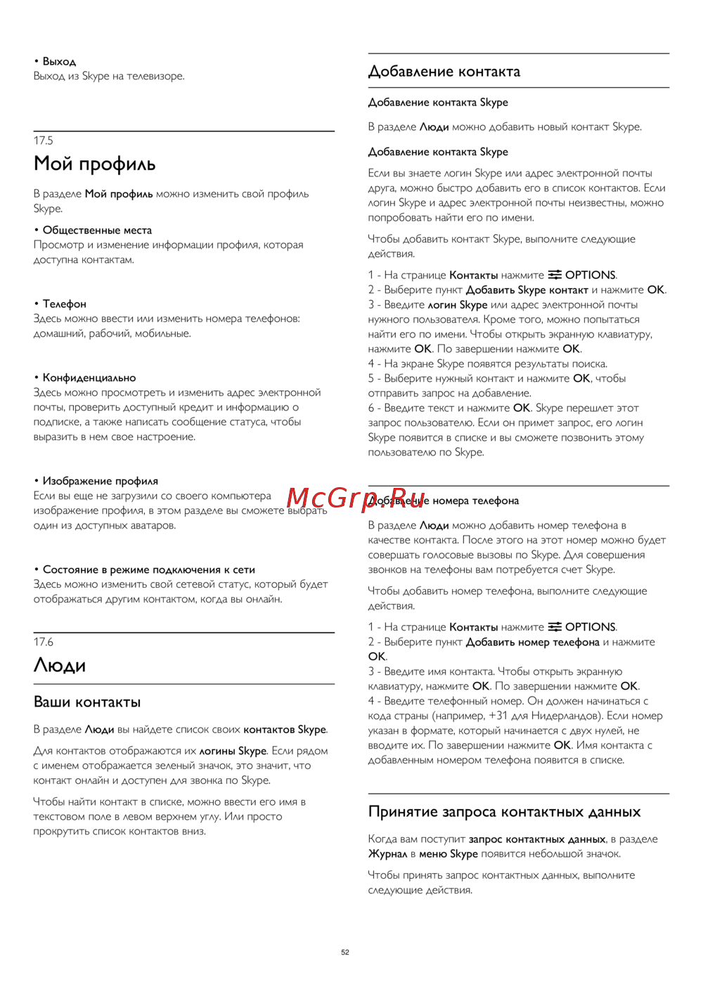 Philips 42PFH6309 — как управлять контактами и профилем в приложении для общения [52/96]