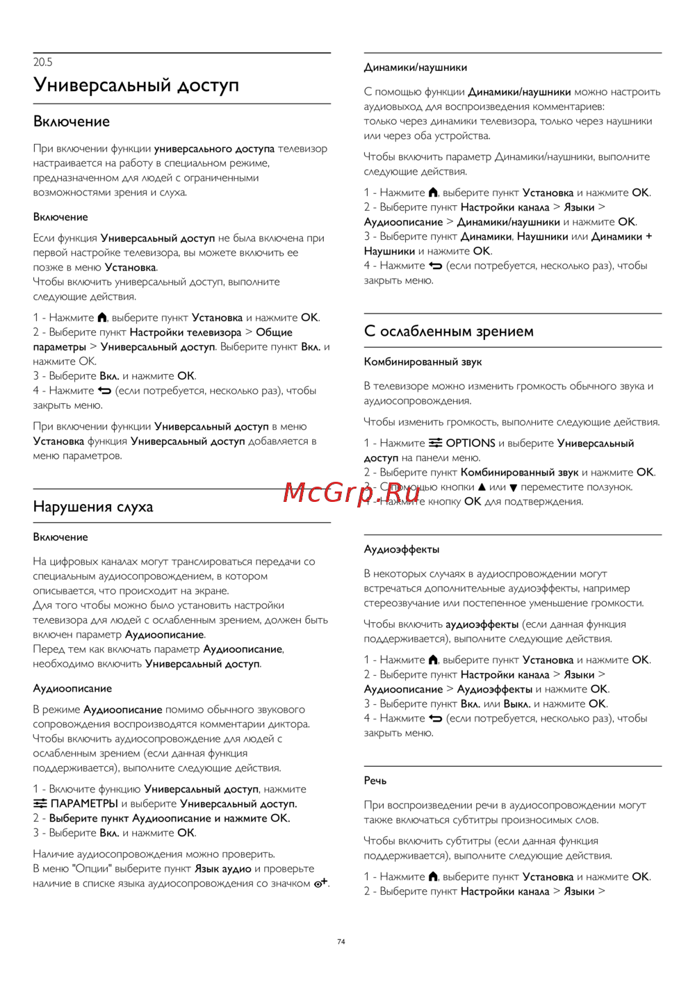Philips 42PFH6309 — настройка универсального доступа на телевизоре для людей с ограниченными возможностями [74/96]