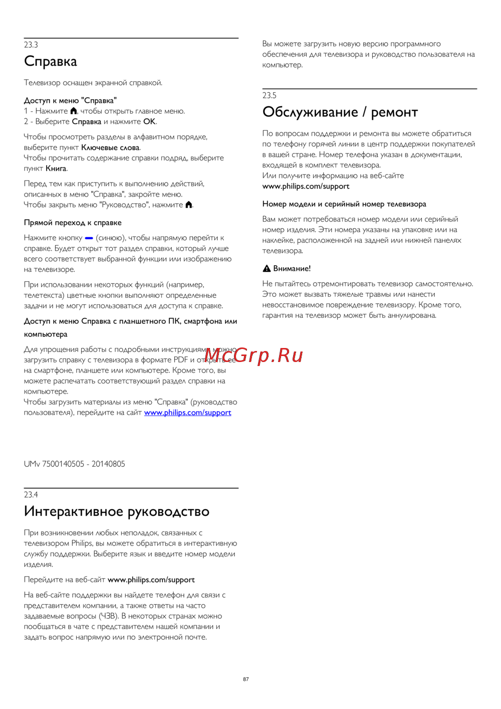 ![Philips 42PFH6309 [87/96] Справка](/views2/1126518/page87/bg57.png)