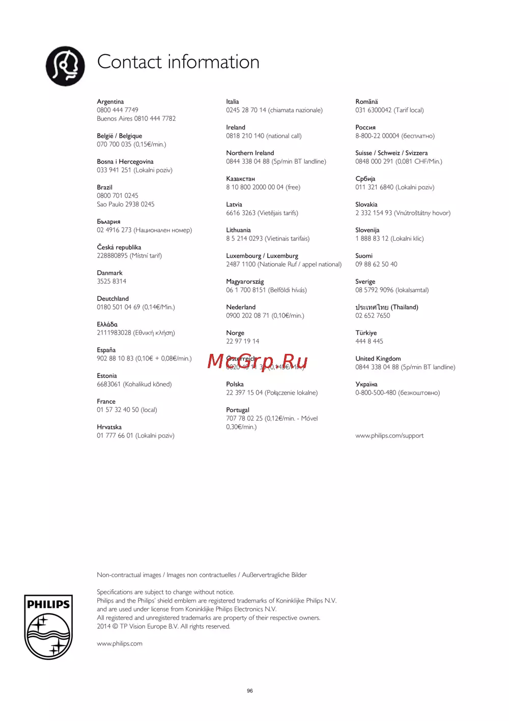 Philips 42PFH6309 [96/96] Contact information