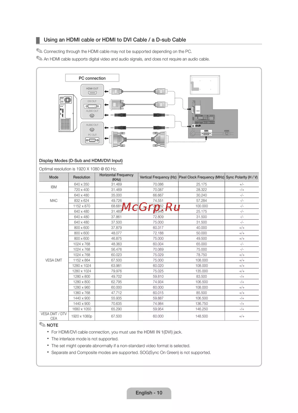 - Using an hdmi cable or hdmi to dvi cable a d sub cable p.10