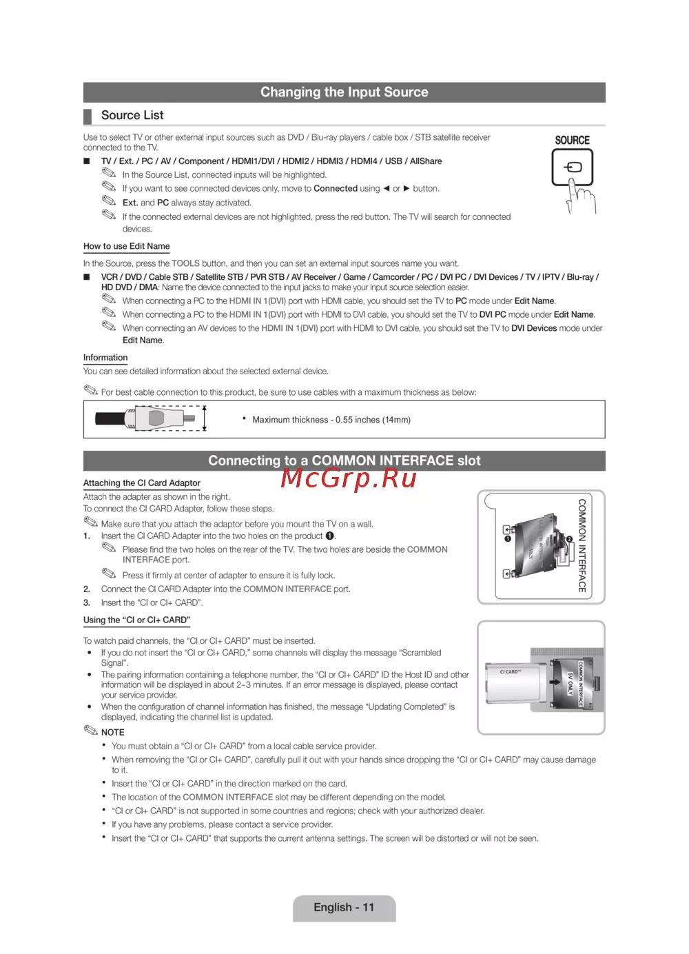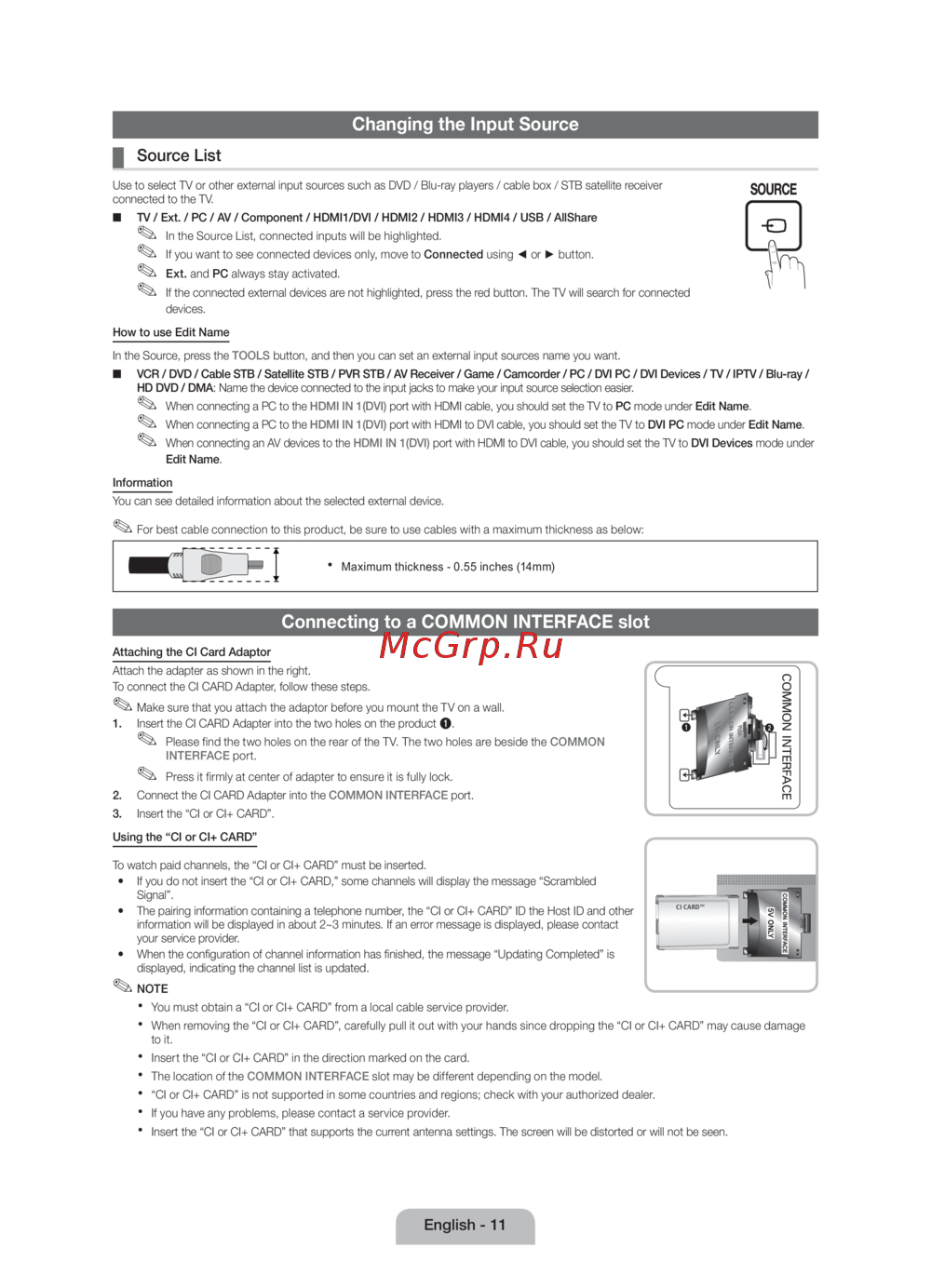 ![Samsung UE32D5000PW [11/73] Connecting to a common interface slot](/views2/1126642/page11/bgb.png)