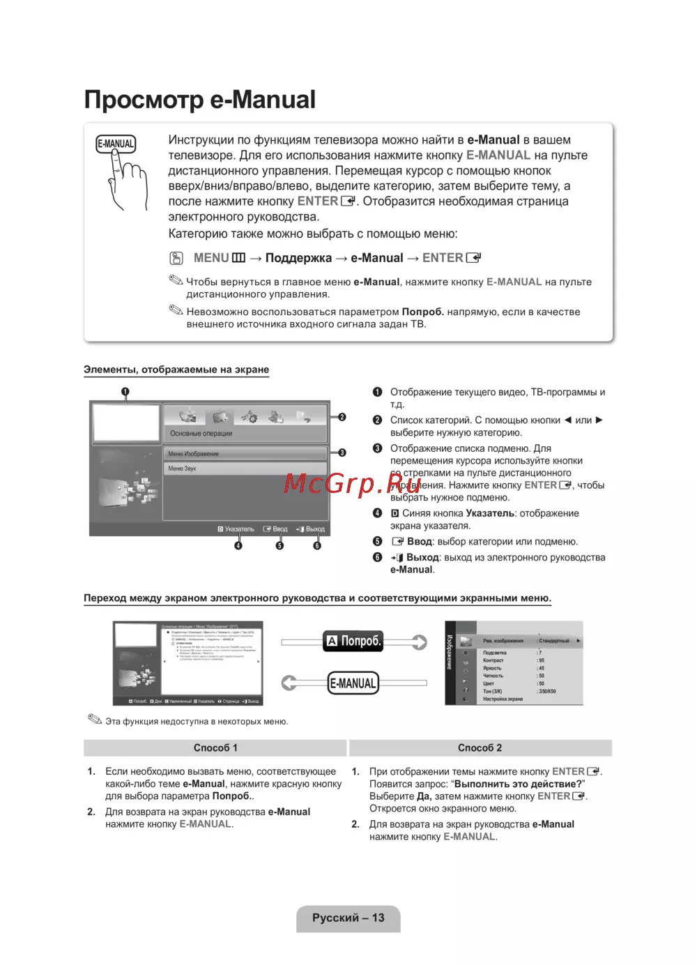 ✎ Чтобы вернуться в главное меню e-Manual, нажмите кнопку E-MANUAL на пульте