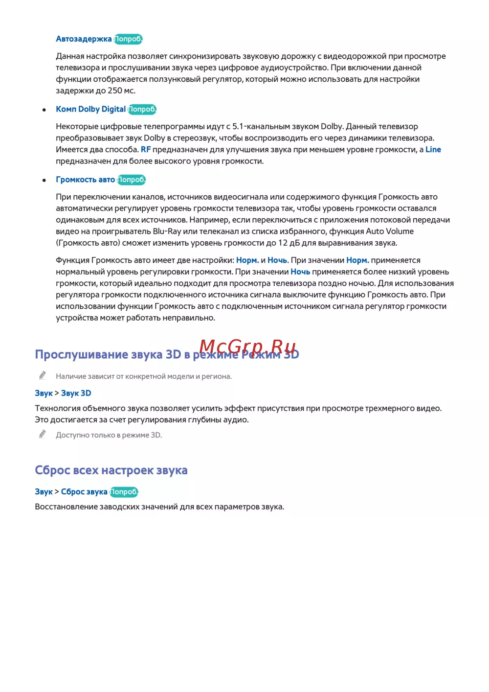 - Дополнительные настройки звука p.4